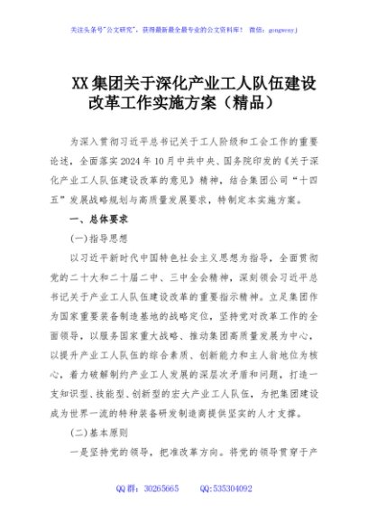 / XX集团关于深化产业工人队伍建设改革工作实施方案(精品)