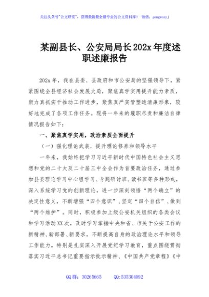 / 某副县长、公安局局长202x年度述职述廉报告