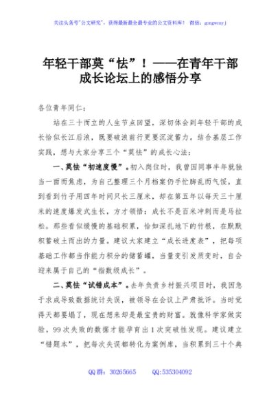 / 年轻干部莫“怯”!——在青年干部成长论坛上的感悟分享