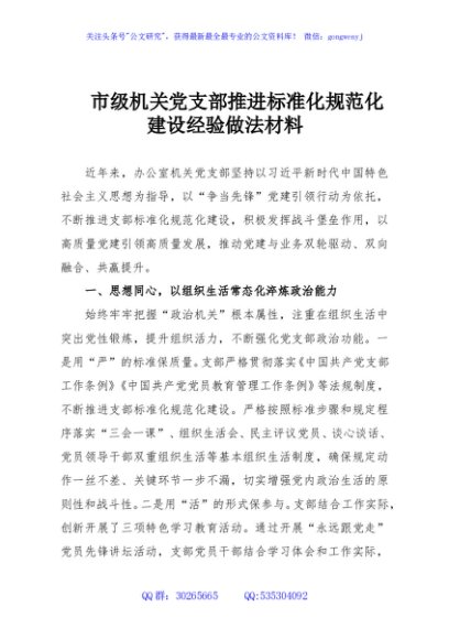 / 市级机关党支部推进标准化规范化建设经验做法材料