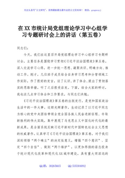 / 在XX市统计局党组理论学习中心组学习专题研讨会上的讲话(第五卷)