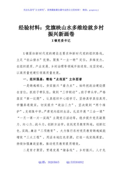 / 经验材料:党旗映山水多维绘就乡村振兴新画卷