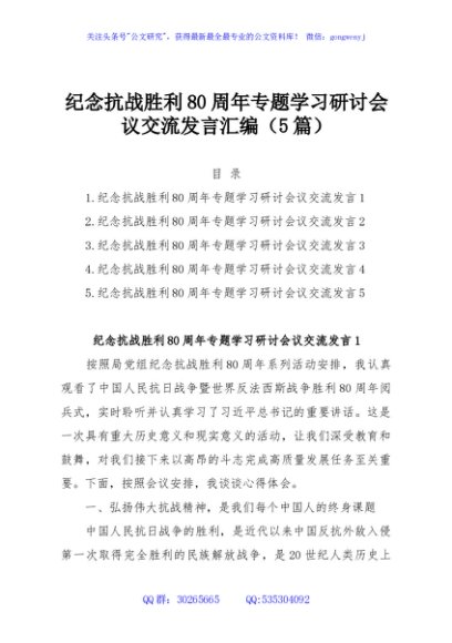 / 纪念抗战胜利80周年专题学习研讨会议交流发言汇编(5篇)