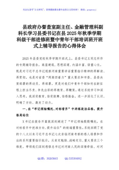 县政府办督查室副主任、金融管理科副科长学习县委书记在县2025年秋季学期科级干部进修班暨中青年干部培训班开班式上辅导报告的心得体会