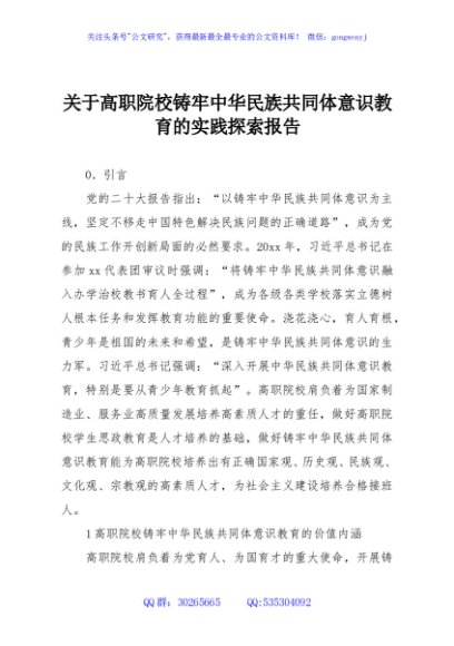 / 关于高职院校铸牢中华民族共同体意识教育的实践探索报告