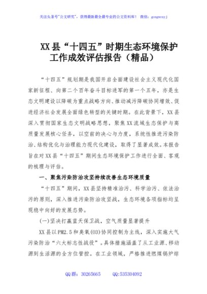 / XX县“十四五”时期生态环境保护工作成效评估报告(精品)
