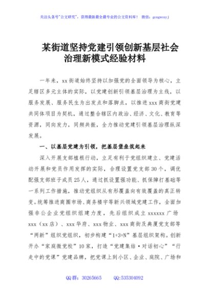 / 某街道坚持党建引领创新基层社会治理新模式经验材料