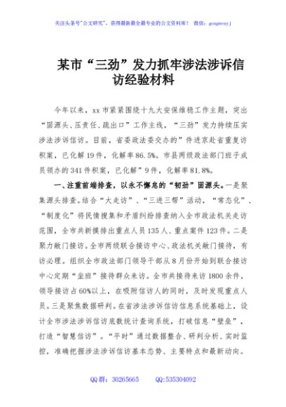 / 某市“三劲”发力抓牢涉法涉诉信访经验材料