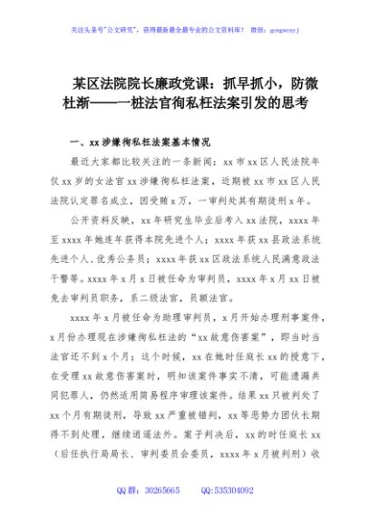 / 某区法院院长廉政党课:抓早抓小,防微杜渐——一桩法官徇私枉法案引发的思考