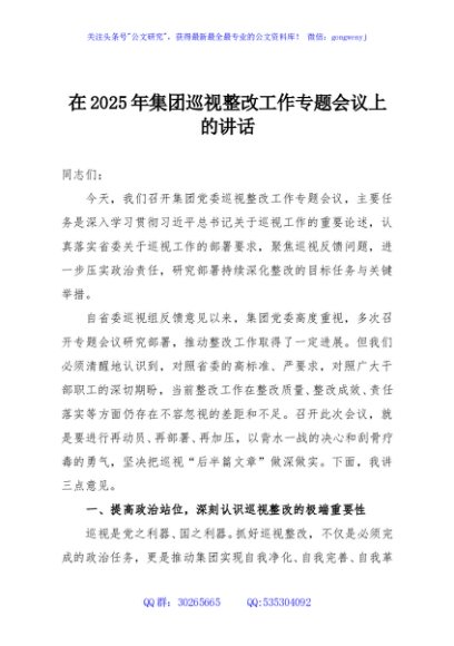 / 在2025年集团巡视整改工作专题会议上的讲话