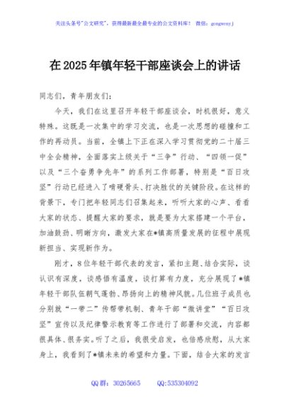 / 在2025年镇年轻干部座谈会上的讲话