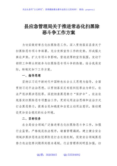 / 县应急管理局关于推进常态化扫黑除恶斗争工作方案