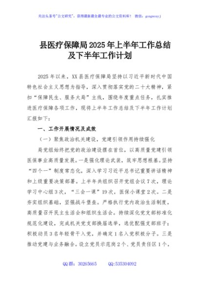 / 县医疗保障局2025年上半年工作总结及下半年工作计划