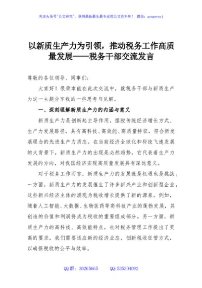 / 以新质生产力为引领,推动税务工作高质量发展——税务干部交流发言