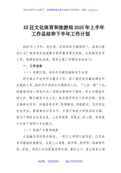 / XX区文化体育和旅游局2025年上半年工作总结和下半年工作计划