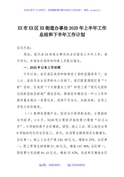 / XX市XX区XX街道办事处2025年上半年工作总结和下半年工作计划
