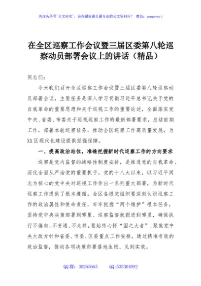 在全区巡察工作会议暨三届区委第八轮巡察动员部署会议上的讲话(精品)
