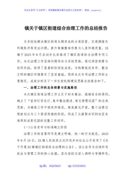 / 镇关于镇区街道综合治理工作的总结报告