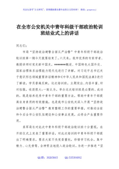 / 在全市公安机关中青年科级干部政治轮训班结业式上的讲话