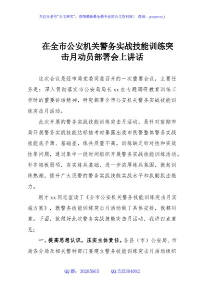 / 在全市公安机关警务实战技能训练突击月动员部署会上讲话