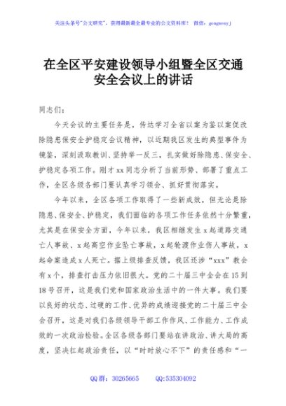 / 在全区平安建设领导小组暨全区交通安全会议上的讲话