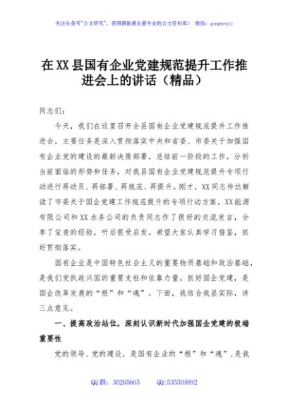 / 在XX县国有企业党建规范提升工作推进会上的讲话(精品)
