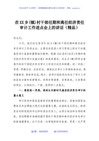/ 在XX乡(镇)村干部任期和离任经济责任审计工作进点会上的讲话(精品)