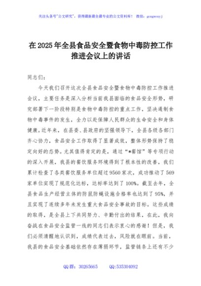 / 在2025年全县食品安全暨食物中毒防控工作推进会议上的讲话