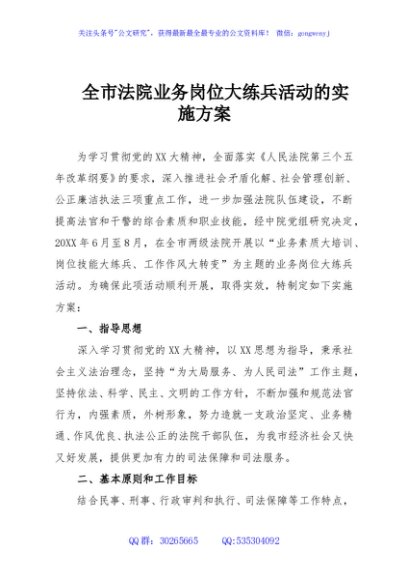 / 全市法院业务岗位大练兵活动的实施方案