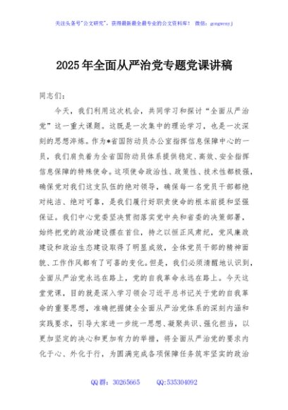 党委2025年落实全面从严治党政治责任强化党内监督工作情况的报告(集团公司)