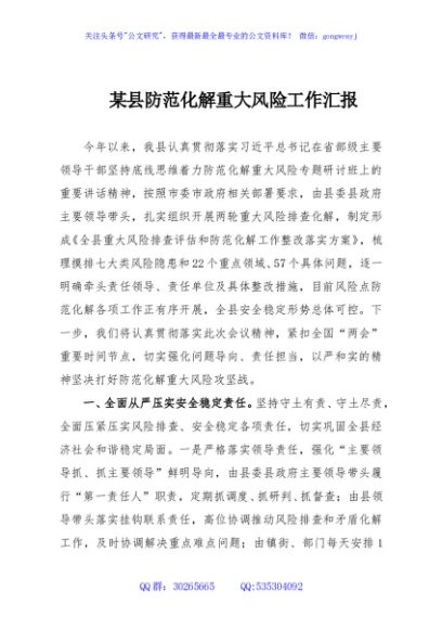 / 某县防范化解重大风险工作汇报