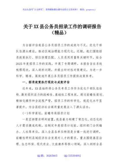 / 关于XX县公务员招录工作的调研报告(精品)
