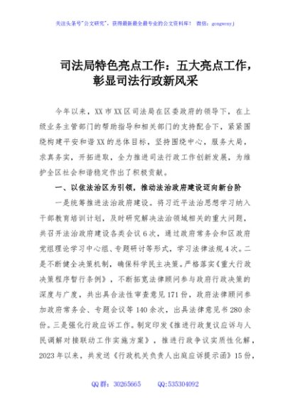 / 司法局特色亮点工作:五大亮点工作,彰显司法行政新风采