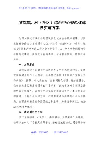/ 某镇镇、村(社区)综治中心规范化建设实施方案