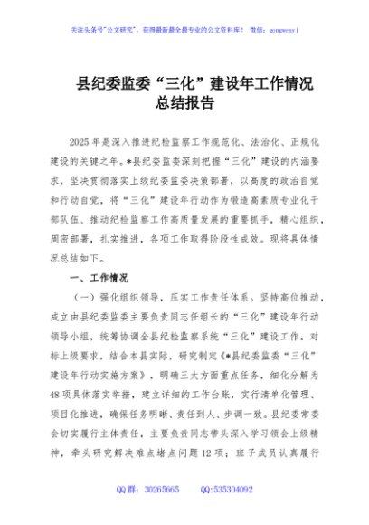 / 县纪委监委“三化”建设年工作情况总结报告