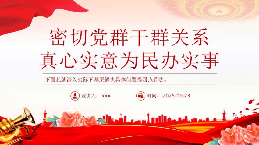 / 密切党群干群关系真心实意为民办实事PPT党课课件