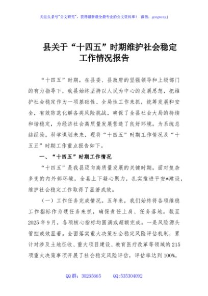 / 县关于“十四五”时期维护社会稳定工作情况报告