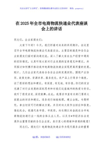 / 在2025年全市电商物流快递业代表座谈会上的讲话