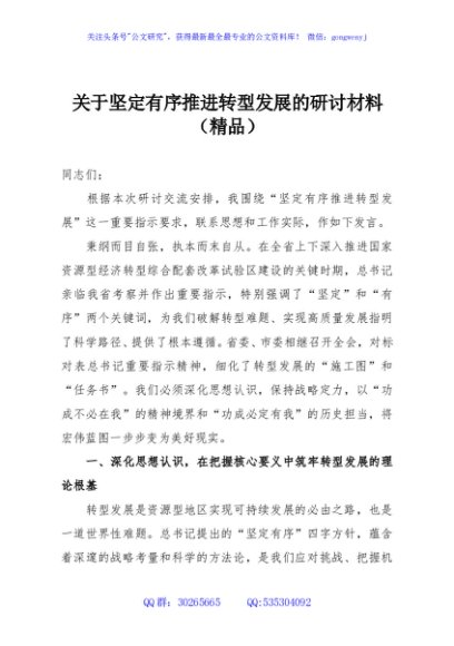 / 关于坚定有序推进转型发展的研讨材料(精品)
