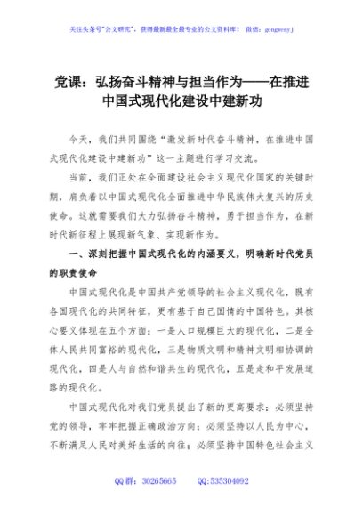 / 党课:弘扬奋斗精神与担当作为——在推进中国式现代化建设中建新功