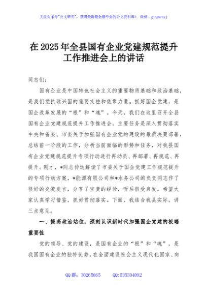 / 在2025年全县国有企业党建规范提升工作推进会上的讲话