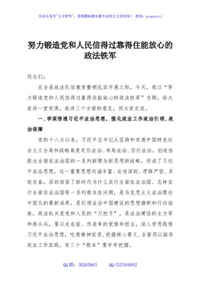 / 努力锻造党和人民信得过靠得住能放心的政法铁军