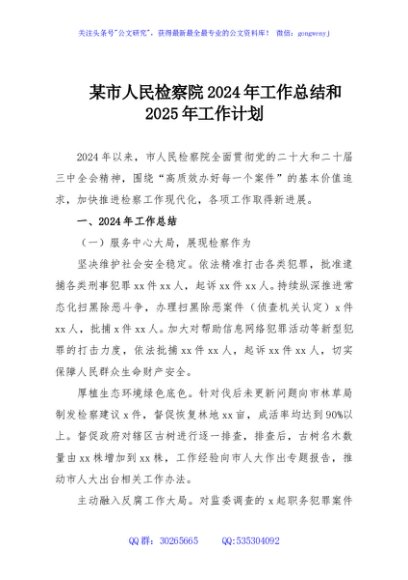 / 某市人民检察院2024年工作总结和2025年工作计划