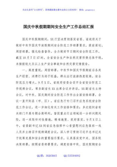 / 国庆中秋假期期间安全生产工作总结汇报