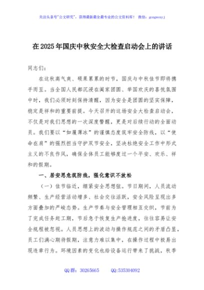 / 在2025年国庆中秋安全大检查启动会上的讲话