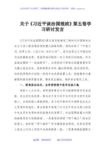 / 关于《习近平谈治国理政》第五卷学习研讨发言