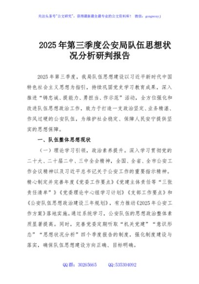 / 2025年第三季度公安局队伍思想状况分析研判报告
