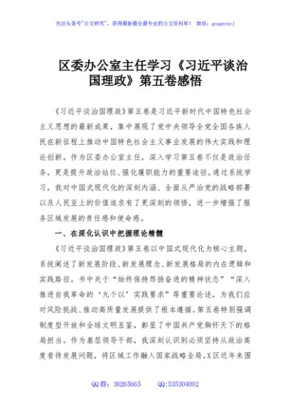 / 区委办公室主任学习《习近平谈治国理政》第五卷感悟