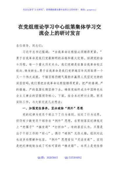 / 在党组理论学习中心组第集体学习交流会上的研讨发言