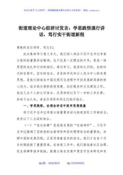 / 街道理论中心组研讨发言:学思践悟滇行讲话,笃行实干街道新程